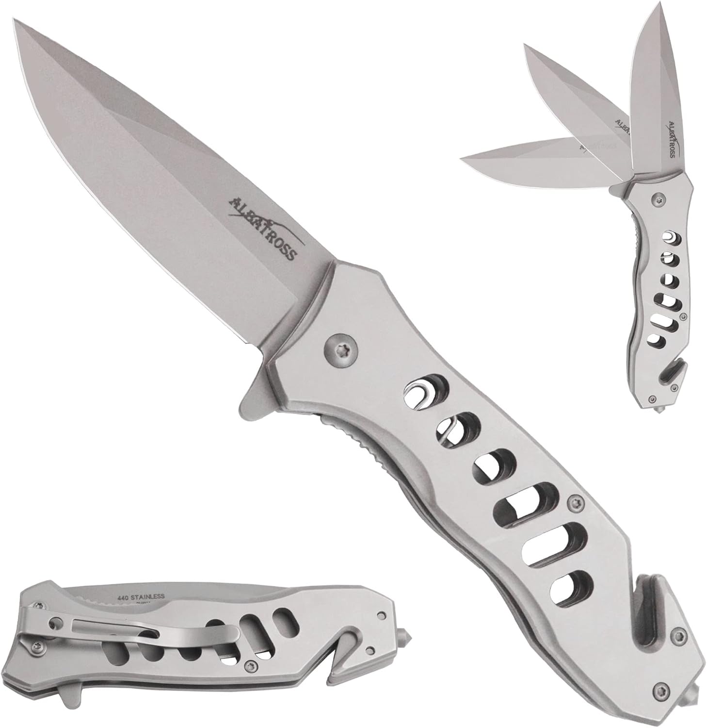 440 stainless steel,Sharp and reliable; 2.7-inch blade length; 3.8-inch closed length; 6.5-inch total length