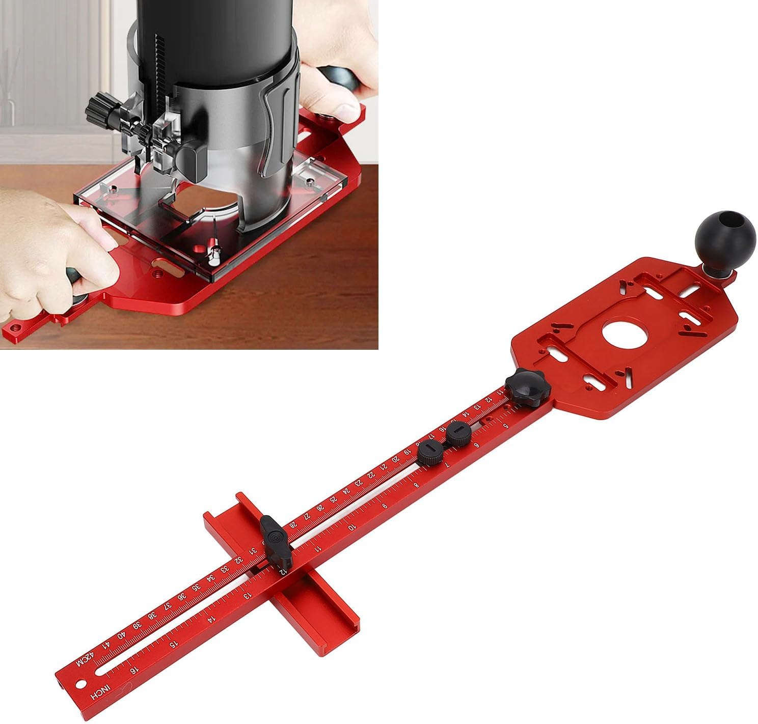 Specification: Item Type: Router Milling Groove Bracket Material: Aluminum Alloy Slot Range: Approx. 60-300mm / 2.36-11.81in Milling Diameter: Approx. 300-800mm / 11.81-31.50in Edging Range: Approx. 140-420mm / 5.51-16.54in Package List: 1 x Trimming and Milling Round Groove Base 2 x Handle 2 x Handle Fixing Screw 2 x Washer 1 x Milling Circular Scale Bar 1 x Milling Straight Edging Positioning Block 1 x Limit Block 1 x Limit Block Fixing Screw 1 x Hand Screw 4 x Screw