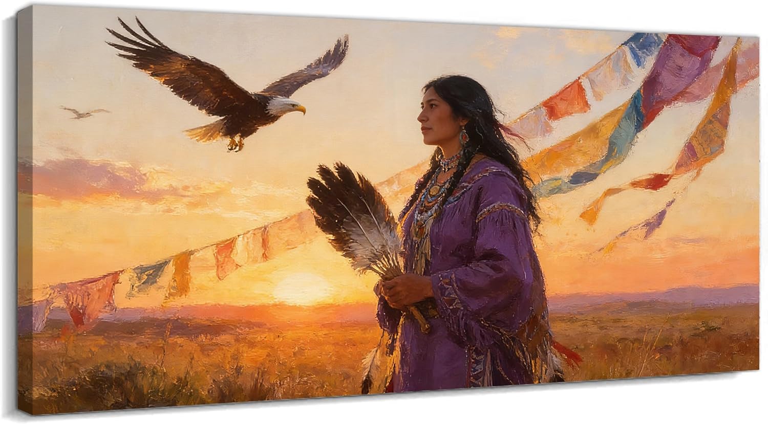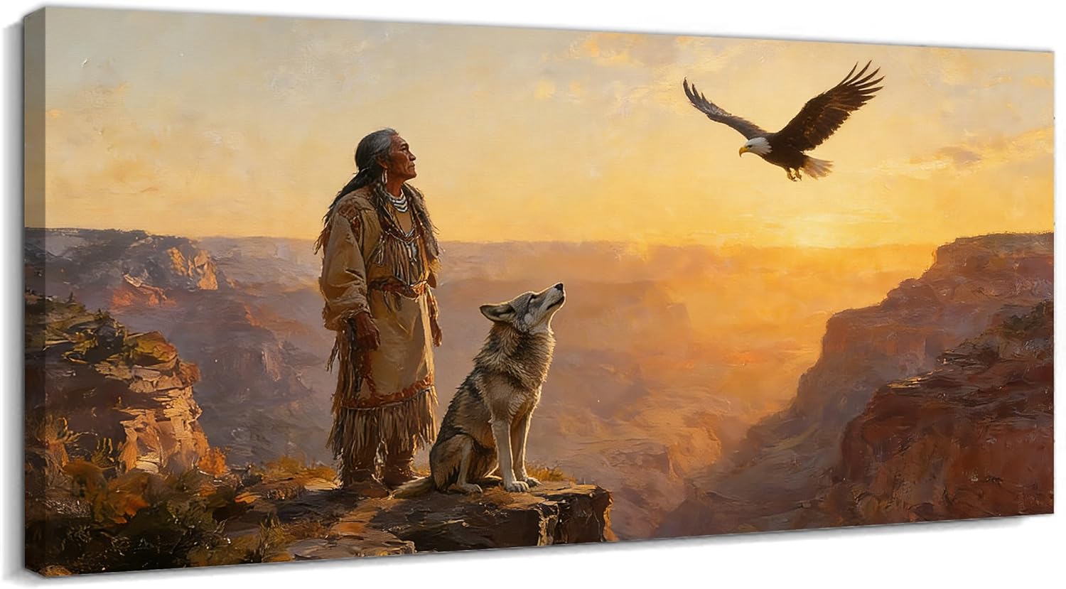 Embark on a Cultural Journey:Step into a world where nature and tradition harmonize with this captivating native American canvas wall art. For those who value rich history and cultural storytelling, this piece brings a unique and profound touch to your decor.Details and Style:Featuring a serene depiction of tepees nestled among towering pine trees, this artwork captures the awe-inspiring essence of American Indian culture. Printed in high resolution on premium canvas, every detail and stroke is imbued with clarity and texture. The image’s earthy tones blended with subtle jewel tones offer an atmospheric feel that will enrich your space with warmth and depth.Design and Craftsmanship:This wall art is presented in gallery-grade style, wrapped around a robust pine frame to ensure durability and elegance. The simplicity of its frame enhances its sophisticated look, making it suitable for any room in your home—from the living room and bedroom to your personal library or office.Conclusion:Let this American Indian canvas wall art become a conversation starter in your home. It not only enhances your décor but serves as a perfect gift choice for those who appreciate cultural and artistic beauty. Add a touch of history and aesthetics to your walls—purchase today and transform your space!