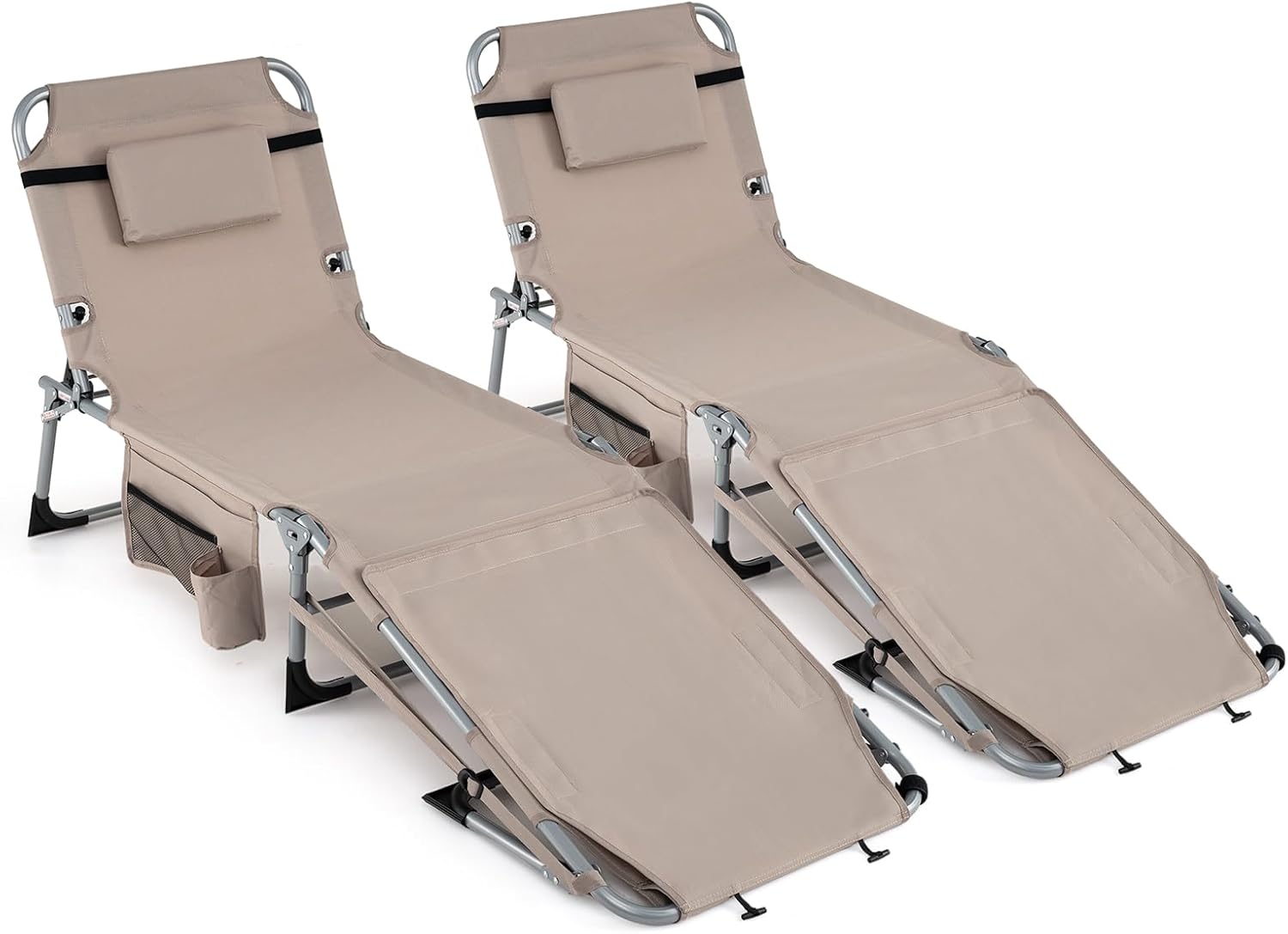 Description: Designed for ultimate comfort and hassle-free convenience, this folding tanning chair is your go-to companion for every sunny getaway—whether you’re hitting the beach, lounging by the pool, or relaxing on your patio. Crafted with a sturdy aluminum and metal frame (with reinforced connections), it supports up to 330 lbs while staying lightweight and easy to transport. The 4-level adjustable backrest, featuring a simple adjust-and-insert mechanism, lets you customize your recline angle perfectly—whether you want to lounge, recline, or soak up the sun in total comfort. Plus, the built-in face hole (with a handy cover) and arm openings take your sunbathing experience to the next level, letting you lie face down without straining your neck or shoulders. Made with breathable, quick-dry 500D Oxford fabric and a detachable head pillow, it keeps you cool and supported all day long. A convenient side pocket stows your phone, sunscreen, sunglasses, and other small essentials, so everything you need is within reach. Specifications: Color: As picture shows Material: Oxford Cloth, Aluminum, Metal, Sponge Overall Dimensions: 65.5"-76.5" x 24" x 14"-31" (L x W x H) Folded Dimensions: 31.5" x 24" x 7" (L x W x Thickness) Net Weight: 14 lbs Weight Capacity: 330 lbs