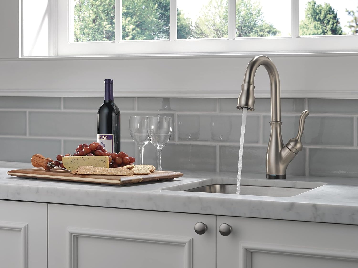 Touch it on. Touch it off. Whether you have two full hands or 10 messy fingers, Delta® Touch2O® Technology helps keep your faucet clean, even when your hands aren’t. A simple touch anywhere on the spout or handle with your wrist or forearm activates the flow of water at the temperature where your handle is set. The Delta TempSense™ LED light changes color to alert you to the water’s temperature and eliminate any possible surprises or discomfort. Delta® MagnaTite® Docking uses a powerful integrated magnet to pull your faucet spray wand precisely into place and hold it there so it stays docked when not in use. Delta® SpotShield™ Technology helps to keep your faucet cleaner, longer by resisting water spots and fingerprints. Keep your space spotless with SpotShield Technology, available across a variety of finishes for the kitchen and bath. Delta® faucets with DIAMOND™ Seal Technology perform like new for life with a patented design which reduces leak points, is less hassle to install and lasts twice as long as the industry standard*. Kitchen faucets with Touch-Clean® Spray Holes allow you to easily wipe away calcium and lime build-up with the touch of a finger. You can install with confidence, knowing that Delta faucets are backed by our Lifetime Limited Warranty. Electronic parts are backed by our 5-year electronic parts warranty. *Industry standard is based on ASME A112.18.1 of 500,000 cycles.