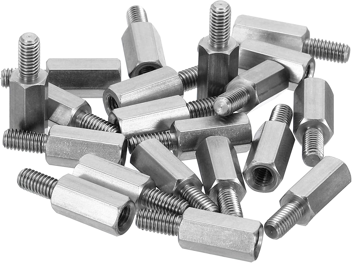 Our standoff screws are widely used in computers, computer cases, circuit board assembly and other electronic fields. The PCB standoffs play a supporting, isolating and fastening role in the use.Specification Material: 304 Stainless SteelThread: M2Thread Pitch: 0.4mm/0.016"Stud length: 9mm/0.35"Screw length: 4mm/0.16"Overall Size: 13mm x 3mm/0.51" x 0.12" (L*W)Packing List:20pcs 9mm+4mm StandoffsAdvantageThe standoff screws are made of stainless steel, which is rust-free, durable, stable, and reusable compared with plastic.InstructionSpecially designed to keep PCB at a consistent height and prevent it from bending, twisting, and short-circuiting.NOTE: Please measure the required length of your project, and then select the appropriate standoffs to save your time and effort.